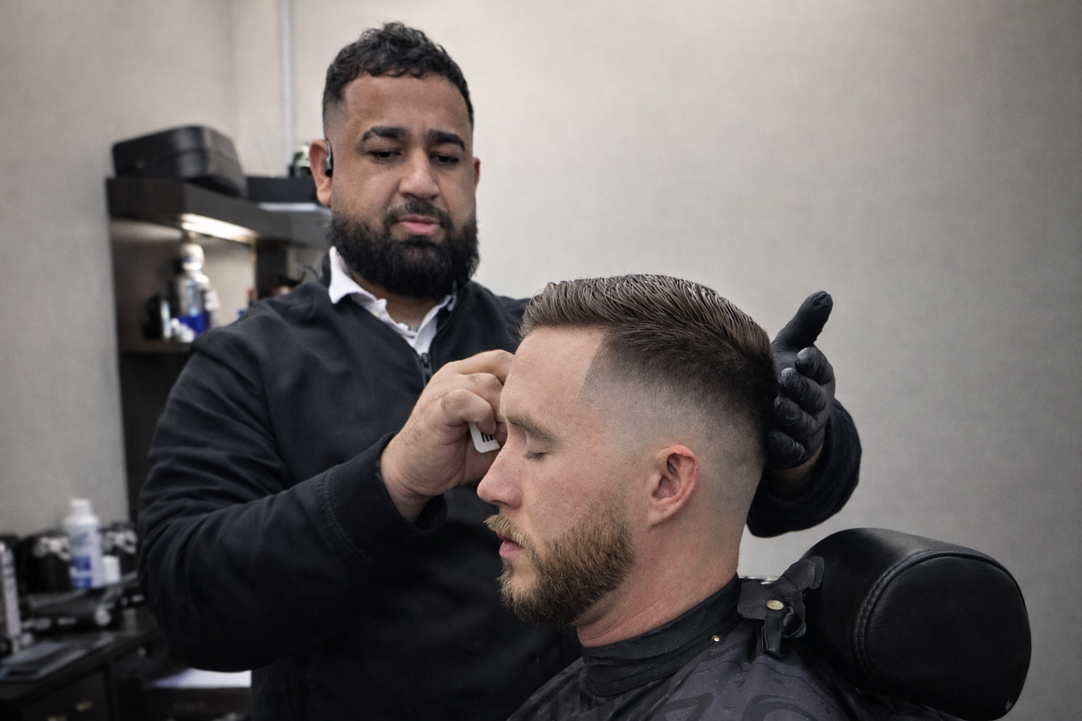 Precision fades and sharp beard trims crafted by our expert barbers.